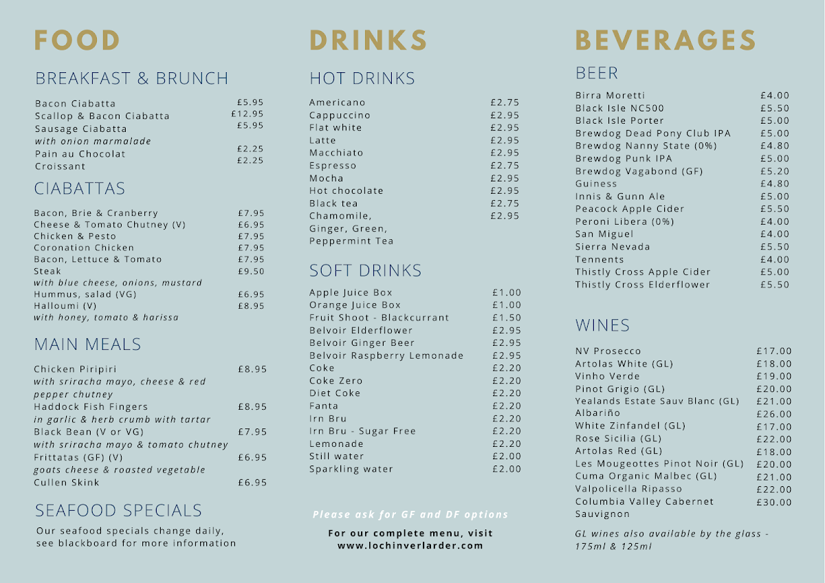Welcome to Lochinver Larder, a treasure nestled on Main Street, Lochinver, offering a menu that celebrates the art of pie-making. With options ranging from the comforting Steak & Ale to delightful vegetarian delights like Butternut Squash, Sweet Potato & Goats Cheese, each pie is crafted with care and just the right amount of filling. Customers rave about the rich flavors of Venison & Cranberry and the innovative Chicken & Stornoway Black Pudding, a limited edition Halloween offering. Beyond pies, the menu features tantalizing burgers—both beef and venison—alongside fresh salmon dishes and hearty meatballs.